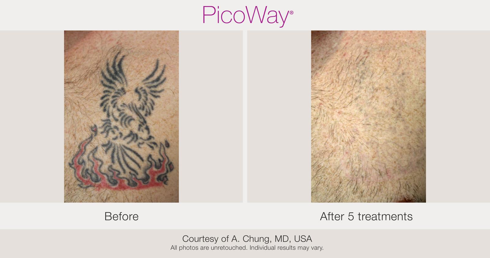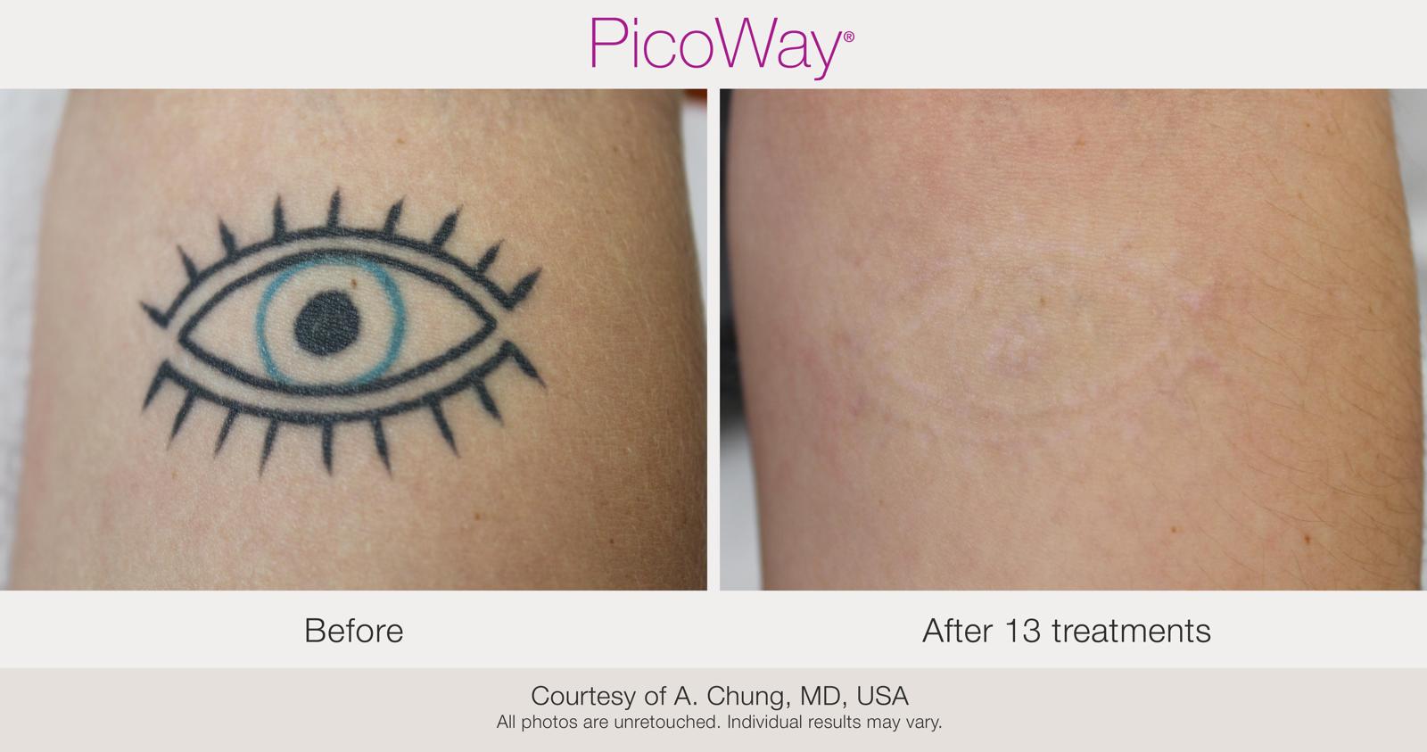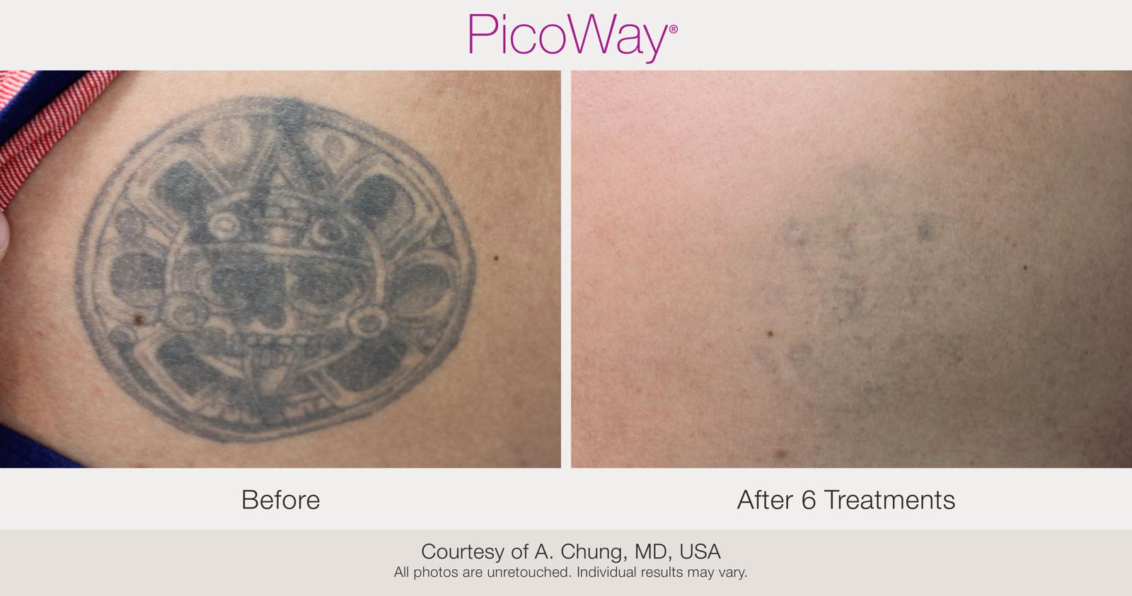 Gracias a sus pulsos ultracortos, el láser PicoWay destruye las partículas de tinta en la dermis sin dañar la piel. Es eficaz incluso en tatuajes con pigmentos complejos como el azul, verde o rojo, y permite eliminarlos de forma progresiva sin dejar marcas.