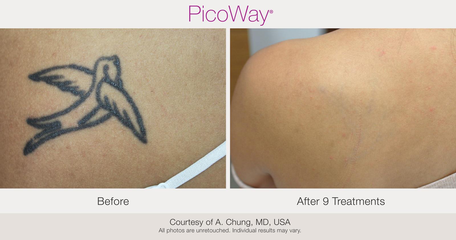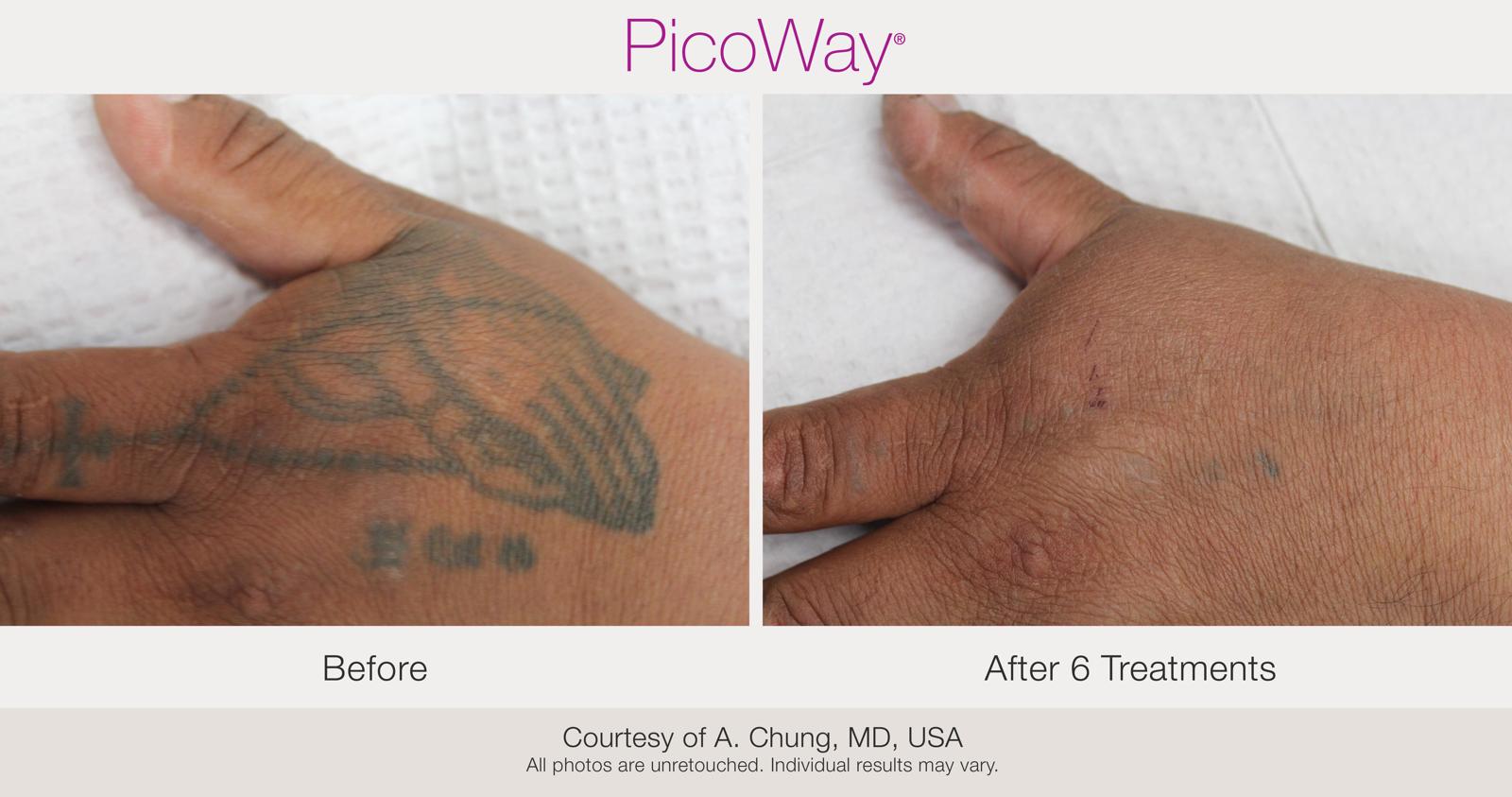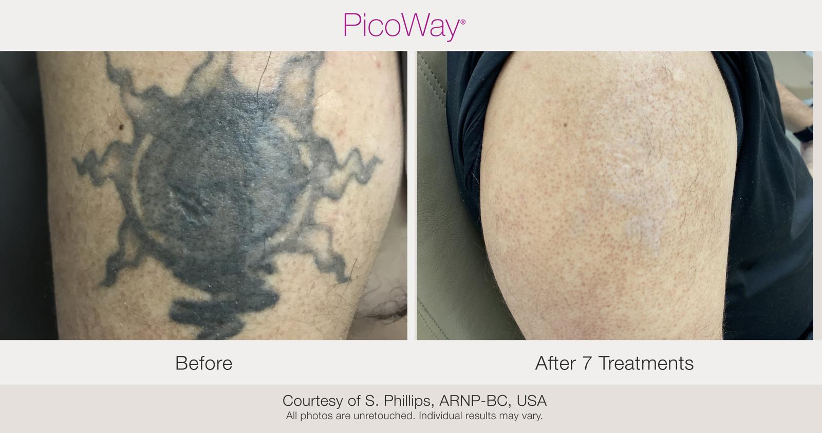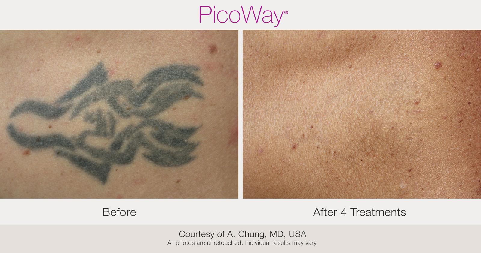 Gracias a sus pulsos ultracortos, el láser PicoWay destruye las partículas de tinta en la dermis sin dañar la piel. Es eficaz incluso en tatuajes con pigmentos complejos como el azul, verde o rojo, y permite eliminarlos de forma progresiva sin dejar marcas.